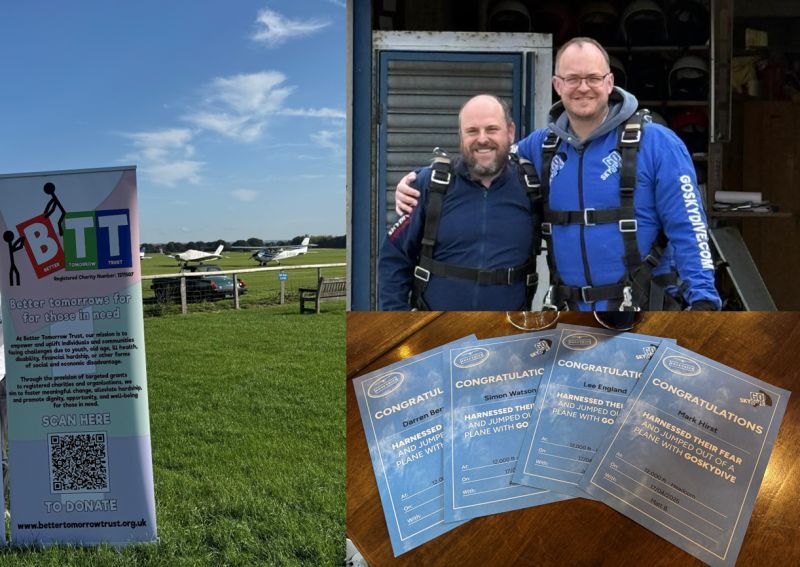 It was an unforgettable moment for Better Tomorrow Trust, with an incredible group finally taking to the skies and raising over £5,000 for our mission. Originally planned for September, the jump was postponed due to, ironically, "a plane fault" – making the successful return even more special.